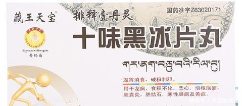 十味黑冰片丸,配方由黑冰片、豆蔻、肉桂、瓦楞组成由瓜子、马铃薯、石榴子、麦角菌素、亮盐、止泻木子、熊胆粉组成。可用于龙病、恶心、食少、胆囊炎、胆结石、腊肉瘤、胆寒病及黄疸。它可以打破胆汁淤积的堆积,温暖胃和消除食物。